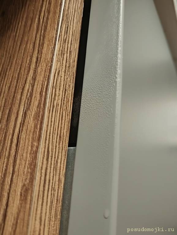 Hello. Help with a question. Along with the kitchen, a new Haier hdwe9-191ru was installed; during operation it has an incomprehensible problem, namely, steam condenses in the sides of the door and settles on nearby doors and niches. For my part, I even adjusted the seal, pulled it out a little, but it didn’t help. What could it be connected with? There is a feeling that steam is escaping at the locations of the side plugs under the screws that attach the PMM to the niche, but there the seal also fits tightly to the door