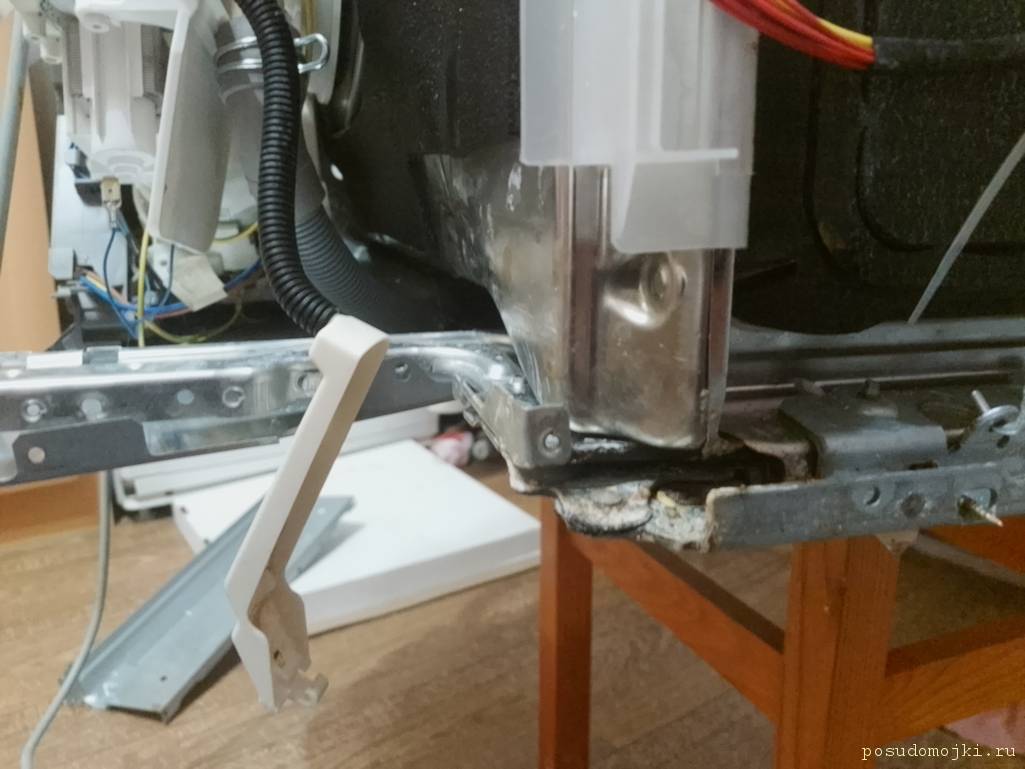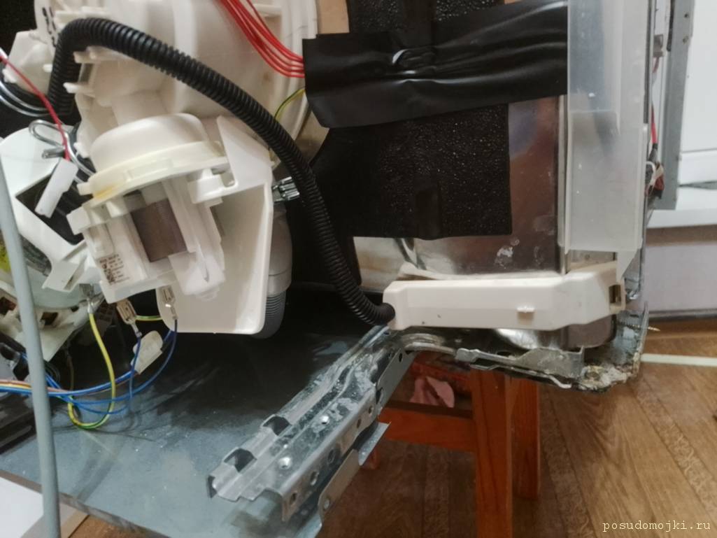Hello. Help is needed. The dishwasher is leaking. When turned on, 7 minutes pass and the show begins. Moreover, water flows from a black hose (there are two of them at the edges of the bottom of the machine). It flows from the right one, you can see it in the photo. Please tell me what could be the problem