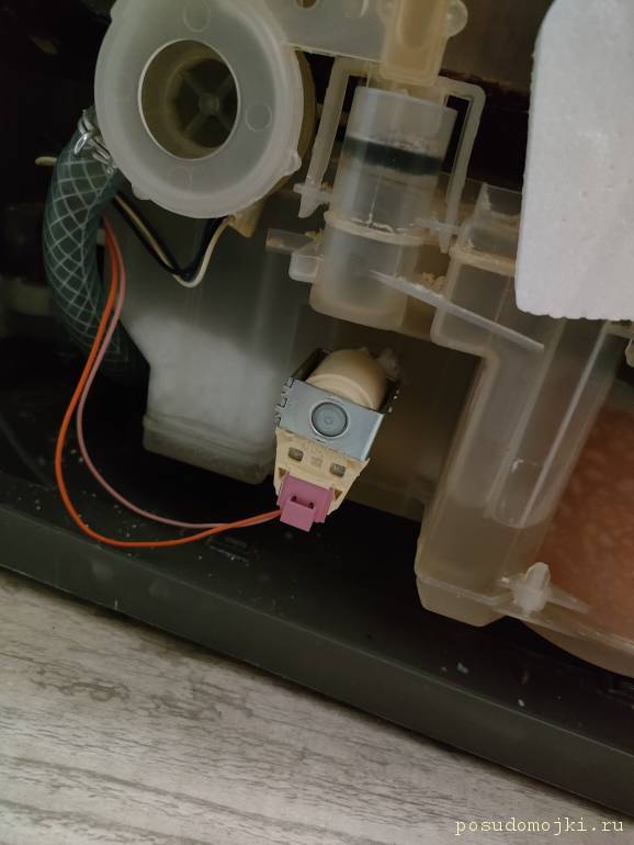 At the end of the wash I decided to check the salt, but it was not there, apparently it had gone into the sewer, I noticed a strange noise from the dishwasher. It turned out that the valve in the photo was humming.