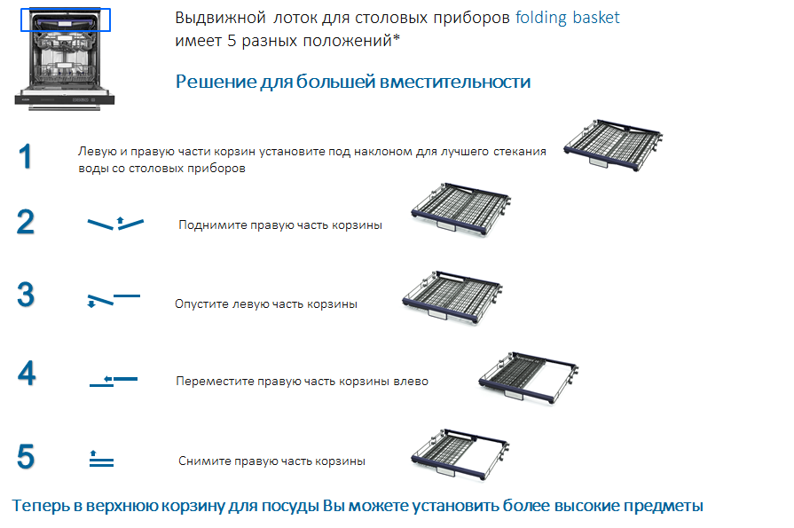 Increasing the capacity of the dishwasher with a folding basket pull-out tray ⇐ Flavia