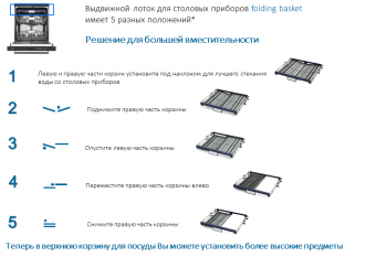 Increasing the capacity of the dishwasher with a folding basket pull-out tray