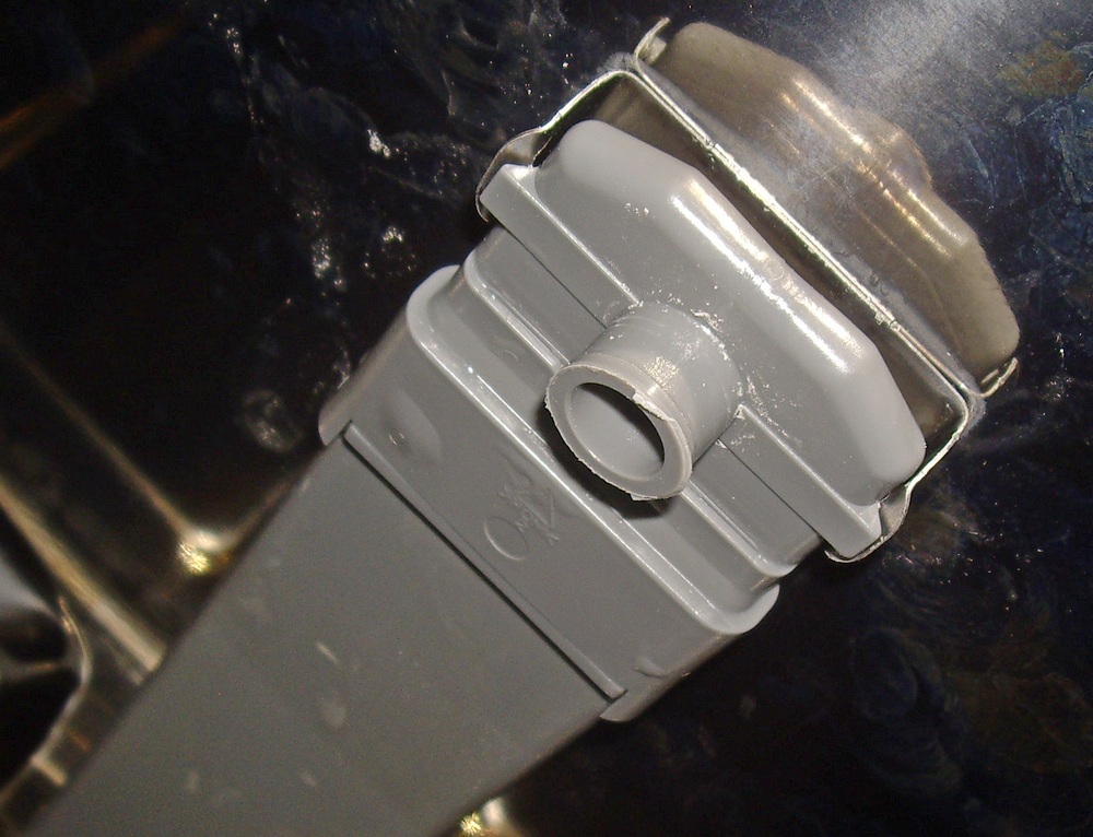 I answer myself, I’m sure this problem will crop up for everyone now. The sprinkler was held on the pipe by a flange made at the same time, it simply wore off, and so the impeller fell out. I couldn’t remove the pipe in the car - the hooks hold it tightly, I had to dismantle the entire pipeline - to do this you need to unscrew 2 screws on the bottom of the car, then you can calmly remove the ill-fated square. In the place where the original flange was, a spring ring was put on, made from a spring for keys - the spring was released by the flame of a lighter, the diameter of the ring was reduced, cut strictly along the circumference, somehow hardened, then pressed onto the pipe and slightly melted with a lighter .