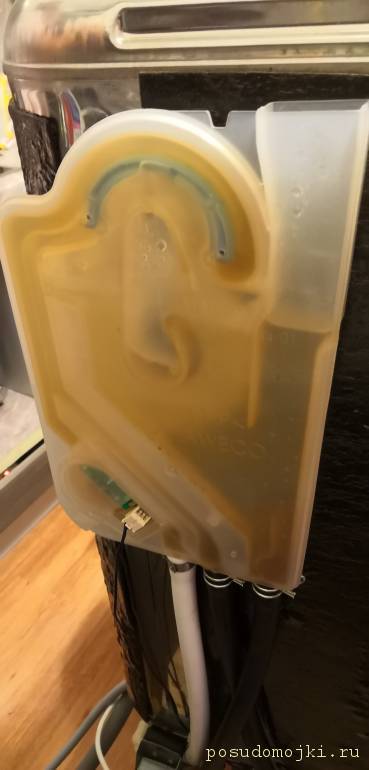 So, the water flies there. And then it stupidly pours into the dishwasher inside (through the “watering can”, also, I don’t know what it’s called correctly, unfortunately).
