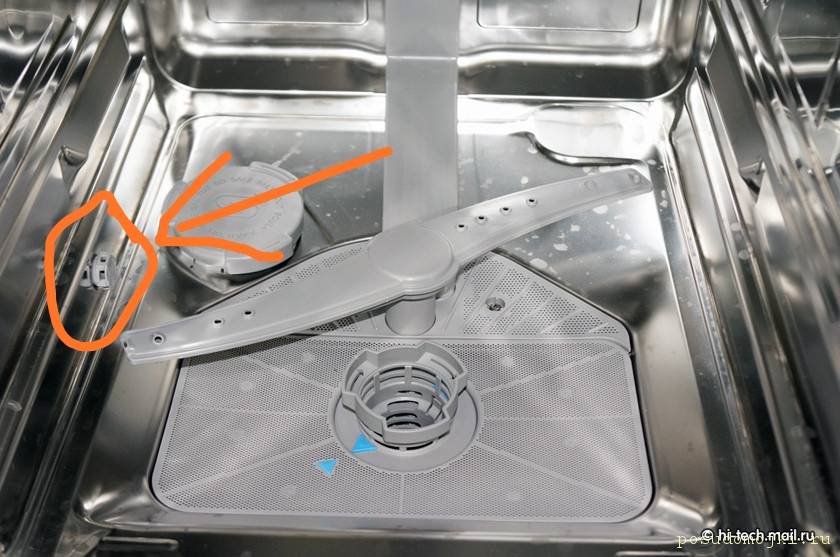 DV! We bought a Bosch dishwasher less than a month ago. During this time, after the washing cycle is completed and the water is completely drained, water is drawn back into the pan through the hole on the side below. We applied under warranty, but since there is no warranty service in our city, the master tried to consult remotely and rendered a verdict that most likely this was not a warranty case, but he could not clearly explain what it was and where the water was coming from. The most interesting thing is that after a forced drain (reset button), water does not flow through this hole. Maybe someone knows what this is and how to help our problem?